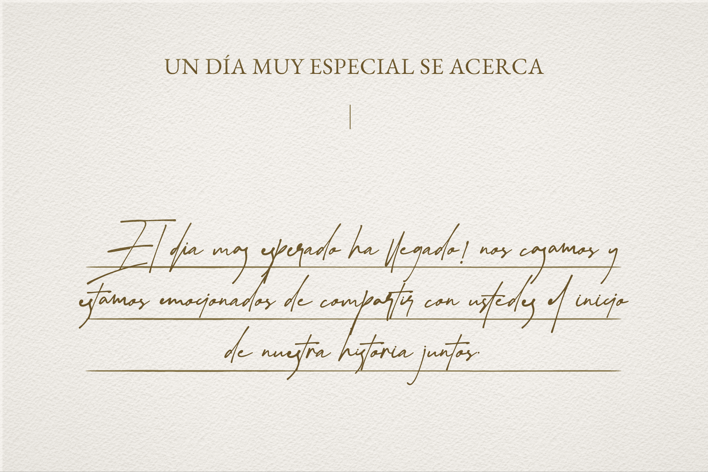 Estamos a punto de comenzar un nuevo capítulo en nuestra historia, uno lleno de sueños compartidos, risas interminables y promesas de amor eterno. Desde que nos encontramos, supimos que estábamos destinados a caminar juntos, sosteniendo nuestras manos en cada paso.